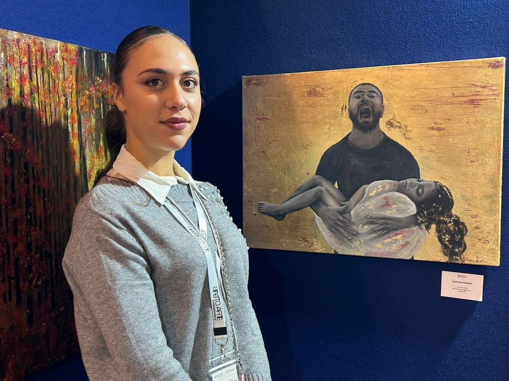 La Biennale Artexpo, organizzata dalla Fondazione Effetto Arte, è tornata al Teatro Ariston dal 13 al 16 novembre (oggi l'ultimo giorno di esposizioni) trasformandolo in un luogo di incontro, dialogo e contaminazione tra linguaggi artistici diversi. In mezzo a quest’atmosfera fatta di creatività, musica e colori, il quadro di Martina ha rappresentato la parte più cruda e necessaria dell’arte: quella che ferma, obbliga a guardare, chiede allo spettatore di non distogliere gli occhi.
