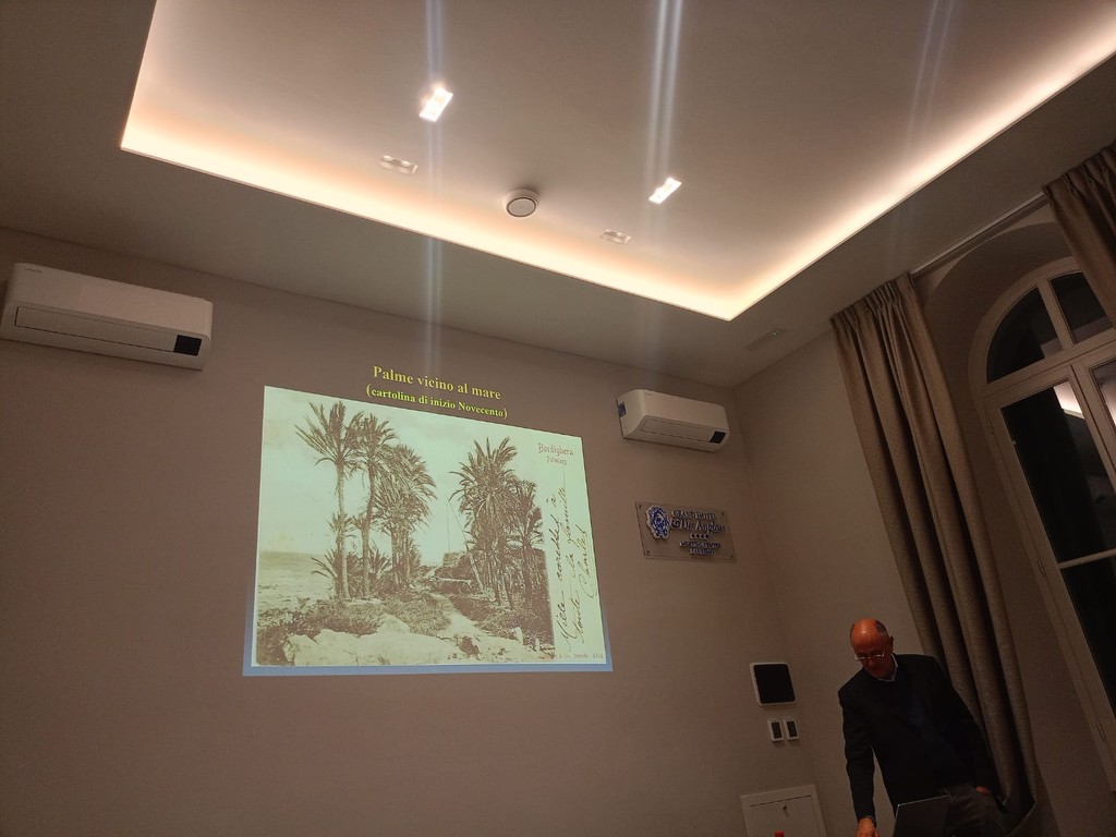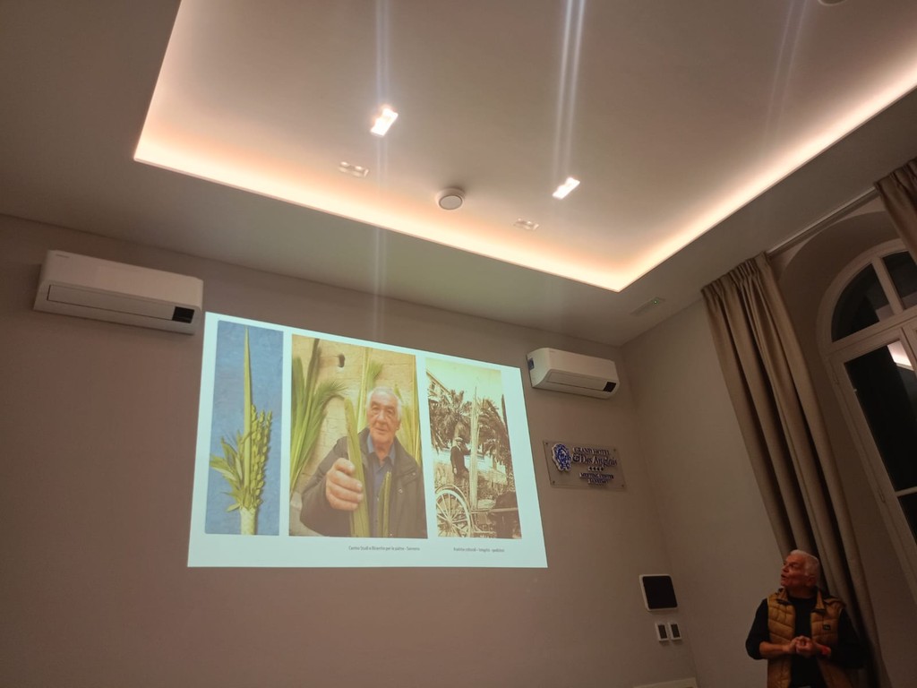 "Una conferenza di particolare interesse" - fanno sapere gli organizzatori - "I relatori Alessandro Carassale e Claudio Littardi hanno accompagnato il pubblico presente in sala in un viaggio che ha spaziato dalla Riviera Ligure fino ad arrivare alla Terra di Israele. Partendo dalla coltivazione fino ad arrivare alla vendita delle palme, il professor Carassale, con dovizia di particolari, ha spiegato come venivano commercializzate queste piante e quali fossero gli imprenditori che hanno dato un forte impulso a questa attività commerciale. Di grande interesse è stata l’analisi dell’andamento economico di questa attività riferendosi a un range temporale molto ampio".