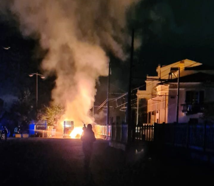 Bordighera, isola ecologica in fiamme: vigili del fuoco in azione (Foto)