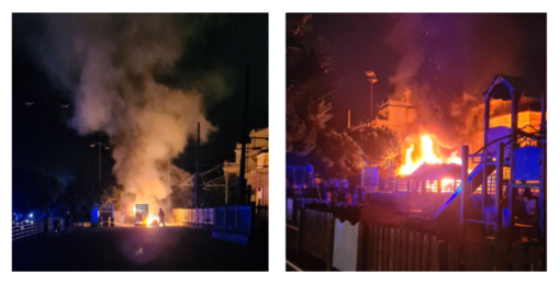 Isola ecologica in fiamme. E' successo in serata, nei pressi del parcheggio vicino all'hotel Parigi e ai giardinetti per bambini sul lungomare, a Bordighera.