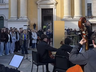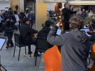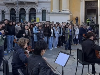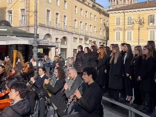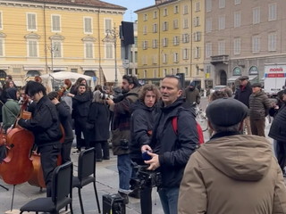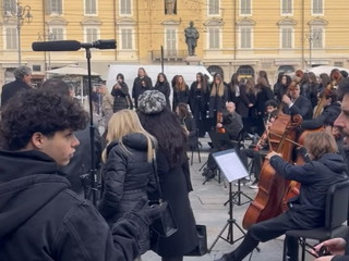 Il pubblico ha cantato due brani legati alla storia del Festival: “Incoscienti Giovani” di Achille Lauro (2025) e il classico “Un’Avventura” di Lucio Battisti (1969). A guidare la scena il Conservatorio Arrigo Boito, diretto dal maestro Massimo Cavalli, con circa cinquanta musicisti impegnati in una versione riarrangiata dei due brani. Un contributo prestigioso che arricchirà le immagini destinate agli spot ufficiali. La tappa parmigiana si aggiunge alle riprese già realizzate a Trento e Lucca, prime due città coinvolte nel progetto. Le clip assemblate diventeranno i promo che accompagneranno, nelle prossime settimane, la comunicazione televisiva e digitale dedicata alla kermesse canora di febbraio.