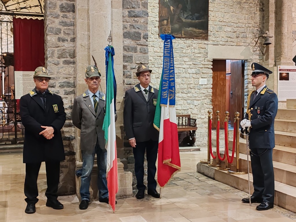 Alla funzione religiosa, officiata da don Gerard, erano presenti anche il cappellano militare della Regione Liguria don Fabio Pagnin, Monsignor Mario Mucci, già cappellano militare presso il comando regionale Trento, il diacono Emanuel in servizio presso la cattedrale di Ventimiglia, il presidente del consiglio comunale Roberto Nazzari, il colonello Omar Salvini, comandante provinciale della guardia di finanza di Imperia, il capitano Pia Virginia Della Monaca, comandante della compagnia di Sanremo, il tenente Ilaria Modica, comandante della sezione operativa della compagnia di Ventimiglia, il presidente dell'Anfi di Ventimiglia Antonio Senis, il presidente dell'associazione nazionale carabinieri Ernesto Fresca Fantoni e la dama ai meriti dei Savoia e volontaria della Croce Verde Intemelia Patrizia Bottiglieri. In conclusione, è stata letta la preghiera del finanziere dal comandante della compagnia della guardia di finanza di Ventimiglia, il tenente Ilaria Modica, ed è stato consegnato un quadro al colonello Omar Salvini, comandante provinciale della guardia di finanza di Imperia.
