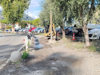 Sono iniziati, questa mattina, i lavori nell'area in cui ieri si era verificata una perdita d'acqua in corso Francia a Ventimiglia.