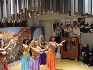 Il botanico Claudio Littardi, in modo avvincente e appassionato, ha spiegato come fin dalla notte dei tempi, questo albero emblematico ha rappresentato un ponte tra l’umanità e i misteri della vita, evocando fertilità, longevità e vittoria: emblema del caldo Sud, la palma si è fusa con il sole e il mare, componendo l’iconico paesaggio mediterraneo. Prima, durante e al termine della conferenza ci sono stati momenti di danza del ventre ispirata agli antichi riti di fertilità mesopotamici, greci e andalusi, che hanno celebrato la femminilità e il ciclo della vita. Le brave danzatrici Licia, Loredana, Cinzia, Stefania, Tiziana della Scuola di danza Orientale e Indiana Bollywood ‘Nadija’s Oriental Dancers’ si sono esibite sulle note delle tradizionali musiche folkloristiche Muwashshah e Raks al-Sayya, culminando con la suggestiva coreografia dei ‘lumini’, accompagnata dalla celebre ‘Desert Rose’ di Sting”.