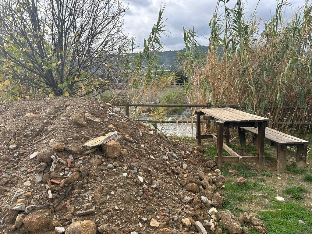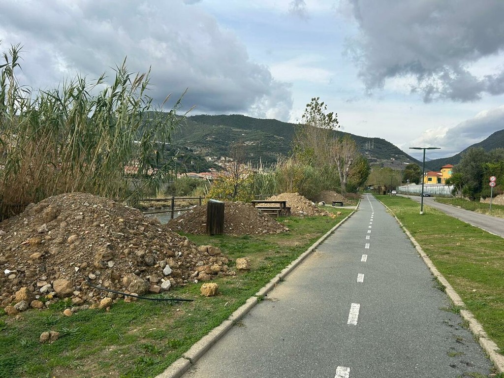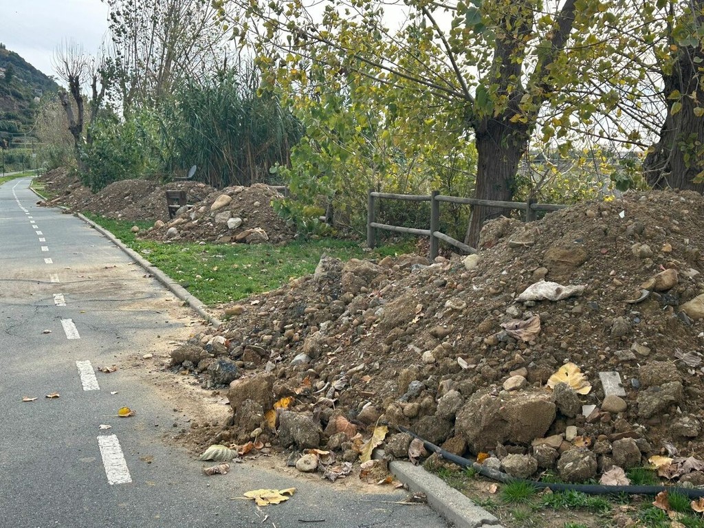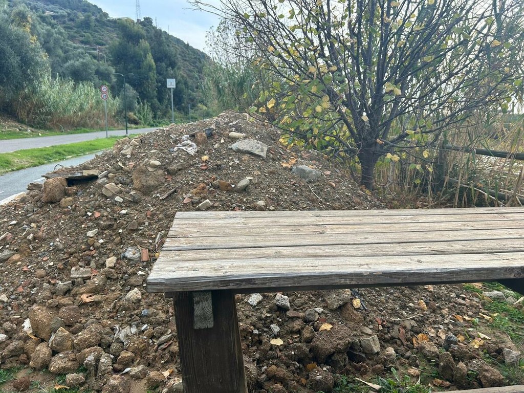Un lungo nastro di terra, pietre, plastica, vetri e altri materiali sparsi per quasi un chilometro lungo l’argine sinistro del torrente Argentina. È lo scenario che negli ultimi giorni ha sorpreso residenti e frequentatori della pista ciclabile di Taggia, in particolare nella zona del parco fluviale, dove i detriti sono comparsi all’improvviso, stando alle testimonianze raccolte. I cumuli sono stati abbandonati tra gli alberi e in alcuni casi hanno letteralmente ricoperto panchine e tavoli di legno, alterando la fruibilità dell’area verde e sollevando dubbi sulla natura e sulla provenienza del materiale.