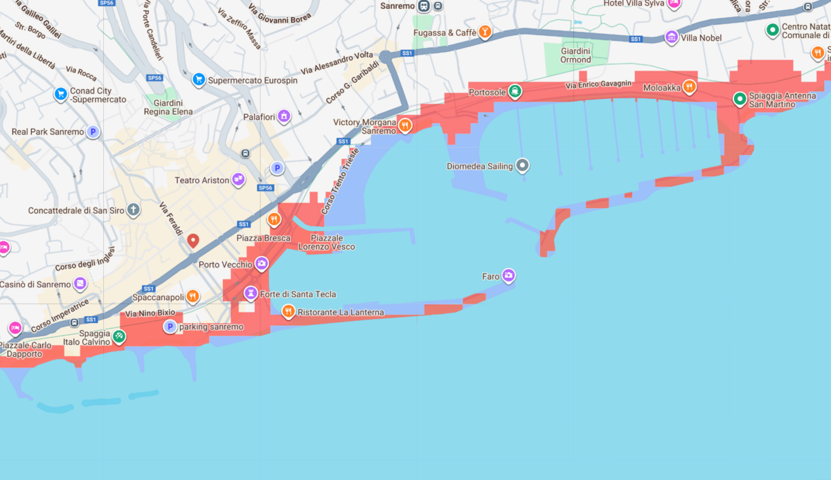 Le mappe parlano chiaro: Sanremo, Arma di Taggia, Vallecrosia e Ventimiglia perderebbero parte della loro costa, e con essa spiagge, porti, edifici e porzioni di centro urbano.