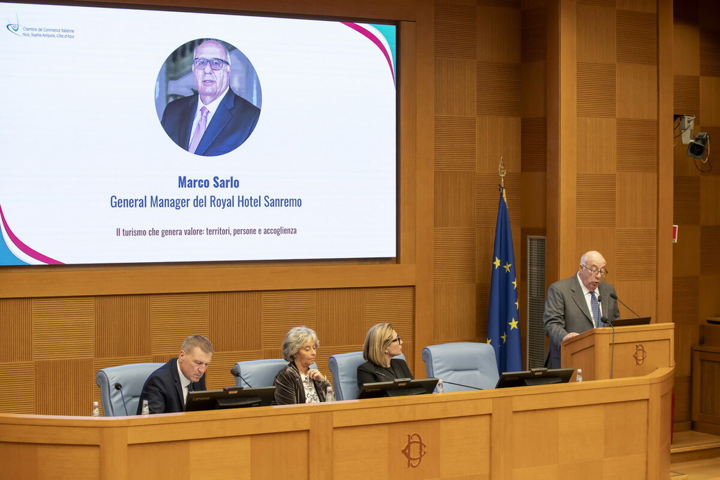 L’evento, organizzato dalla Camera di Commercio Italiana di Nizza, Sophia Antipolis e Costa Azzurra, con la partecipazione degli onorevoli Maria Grazia Frija, Gianluca Caramanna e Galeazzo Bignami, riunisce istituzioni, destinazioni turistiche e rappresentanti del settore alberghiero e dei trasporti per discutere il benessere come valore strategico del turismo italiano. Tra i relatori della tavola rotonda “Ospitalità e qualità dell’accoglienza” appunto Marco Sarlo, Management Consultant del Royal Hotel ed ex assessore al turismo di Sanremo, che ha portato l’esperienza della storica struttura ligure, membro di The Leading Hotels of the World.