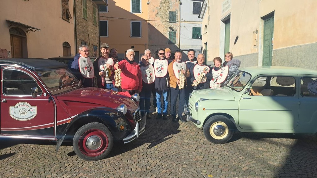 Sabato mattina una decina di vetture storiche degli anni ’60-’90 del Camea Club di Asti, con il supporto di Asti Energy, è partita da Asti per raggiungere, attraverso paesaggi imbiancati dalla neve, la Liguria. Dopo circa 150 chilometri, la Carovana della Bagna Cauda è arrivata a Vessalico, dove è stata accolta dal sindaco Flavio Manfredi, dai primi cittadini dell’Unione degli 11 Comuni dell’Alta Valle Arroscia, dal vicepresidente della Regione Liguria Alessandro Piana e dal presidente del Consorzio dell’Aglio di Vessalico Andrea Ferrari.
