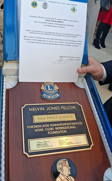 Il riconoscimento, che porta il nome del fondatore del Lions International, Melvin Jones, vuole essere un chiaro, seppur semplice, ringraziamento a Sua Altezza Serenissima, per il suo impegno costante per la tutela ambientale, una delle otto cause globali dell'associazione. Il principe, inoltre, era già socio onorario del Lions Club di Monaco.
