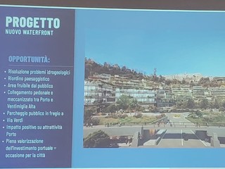"Abbiamo adottato una variante riguardo al nuovo waterfront che ha un costo di 123.000.000 euro con un finanziamento privato. Darà diverse opportunità: risoluzione dei problemi idrogeologici, riordino paesaggistico, area fruibile dal pubblico, collegamento pedonale e meccanizzato tra porto e Ventimiglia Ala, parcheggio pubblico in fregio a via Verdi, impatto positivo su attrattività del porto piena valorizzazione dell'investimento portuale che rappresenta un'occasione per la città" - afferma Di Muro - "E' in fase di studio il parcheggio Funtanin da realizzare con un finanziamento pubblico di un costo di 5.000.000 euro. Permetterà una riqualificazione urbana, il miglioramento della viabilità locale, la creazione di un nuovo percorso panoramico e l'incremento dell'afflusso turistico e pedonale a beneficio delle attività commerciali e di ristorazione del centro storico".