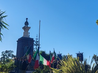Ventimiglia celebra il centenario del monumento ai caduti di tutte le guerre. Questa mattina alla presenza di autorità civili, locali, provinciali e regionali, militari, religiose, delle associazioni d'arma e combattentistiche, della dama ai meriti dei Savoia e volontaria della Croce Verde Intemelia Patrizia Bottiglieri, delle associazioni del territorio e dei cittadini è stata celebrata presso la parrocchia di Sant'Agostino una santa messa, officiata dal vescovo di Ventimiglia-Sanremo, Monsignor Antonio Suetta.
