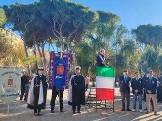 "Oggi ci ritroviamo, un secolo dopo, davanti a questo monumento che la città di Ventimiglia volle erigere nel 1925 per rendere eterno l’omaggio al Milite Ignoto, simbolo di tutti i caduti senza nome, di tutti coloro che offrirono la vita per la Patria, senza chiedere nulla in cambio" - ricorda il sindaco Flavio Di Muro - "Quel 29 novembre di cento anni fa, qui, dove oggi si stende la nostra memoria, si raccolse un’intera comunità: famiglie, reduci, autorità, giovani e anziani. Tutti uniti nel dolore e nella riconoscenza. Non per celebrare la guerra, ma per ricordare il sacrificio. Non per esaltare la vittoria, ma per custodire la pace conquistata col sangue. Il Milite Ignoto rappresenta l’essenza stessa dell’eroismo silenzioso. È l’uomo comune, il figlio, il padre, il fratello, che la guerra ha privato di un nome, ma non della dignità. È la coscienza collettiva di un Paese che, nel riconoscerlo, ha voluto dire: nessuno è dimenticato. Oggi, a cento anni di distanza, noi cittadini di Ventimiglia rinnoviamo quel patto di memoria. Il monumento che ci guarda non è un reperto del passato, ma una voce viva che ci invita a riflettere sul valore della pace, sul senso della patria e sul dovere della memoria. In un tempo in cui il mondo conosce ancora conflitti e divisioni, ricordare il Milite Ignoto significa ricordare il prezzo dell’indifferenza, e il valore della solidarietà. Ai giovani, in particolare, diciamo: custodite questo monumento non solo con i fiori delle cerimonie, ma con la coscienza e con le scelte quotidiane. Perché la pace non è mai un’eredità garantita: è una conquista che si rinnova ogni giorno. Con rispetto e gratitudine, rendiamo oggi onore al Milite Ignoto, ai caduti di Ventimiglia, e a tutte le donne e gli uomini che hanno servito l’Italia con coraggio e sacrificio. Che la loro memoria continui a illuminare il nostro cammino. Onore al Milite Ignoto. Onore a tutti i caduti. Viva Ventimiglia, viva l’Italia!".