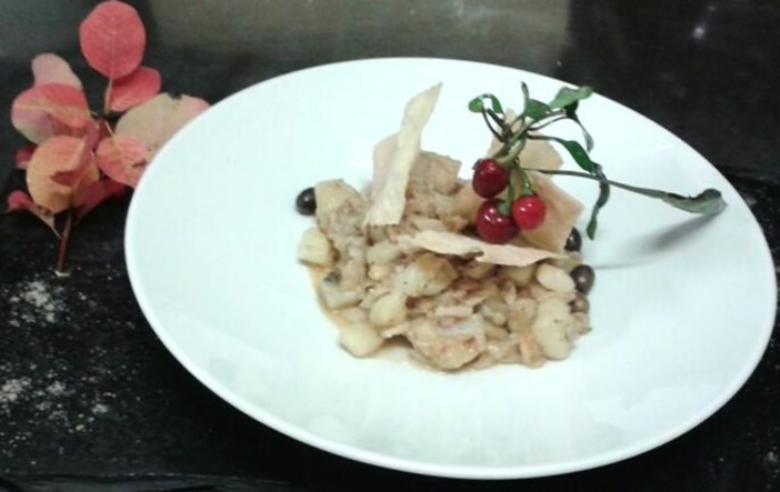 - “Bieletti” di stoccafisso con cialda all’acqua di cottura dei fagioli di Pigna