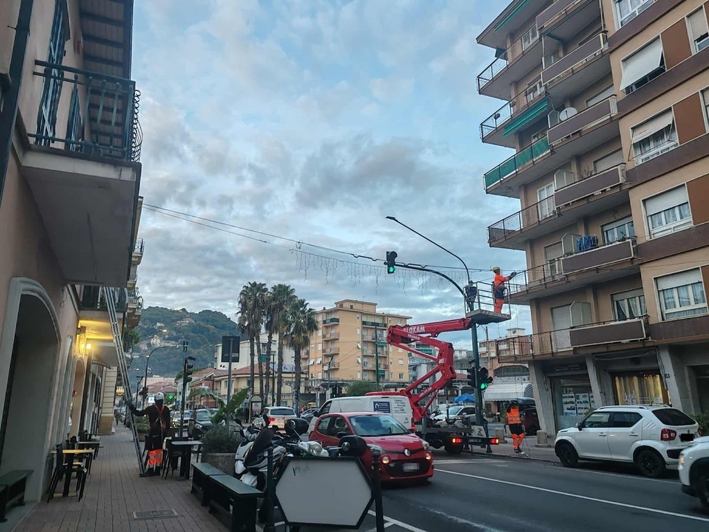 Vallecrosia si prepara alle festività natalizie. E' iniziata oggi l'installazione delle luminarie che abbelliranno e illumineranno le vie della città durante il periodo natalizio.