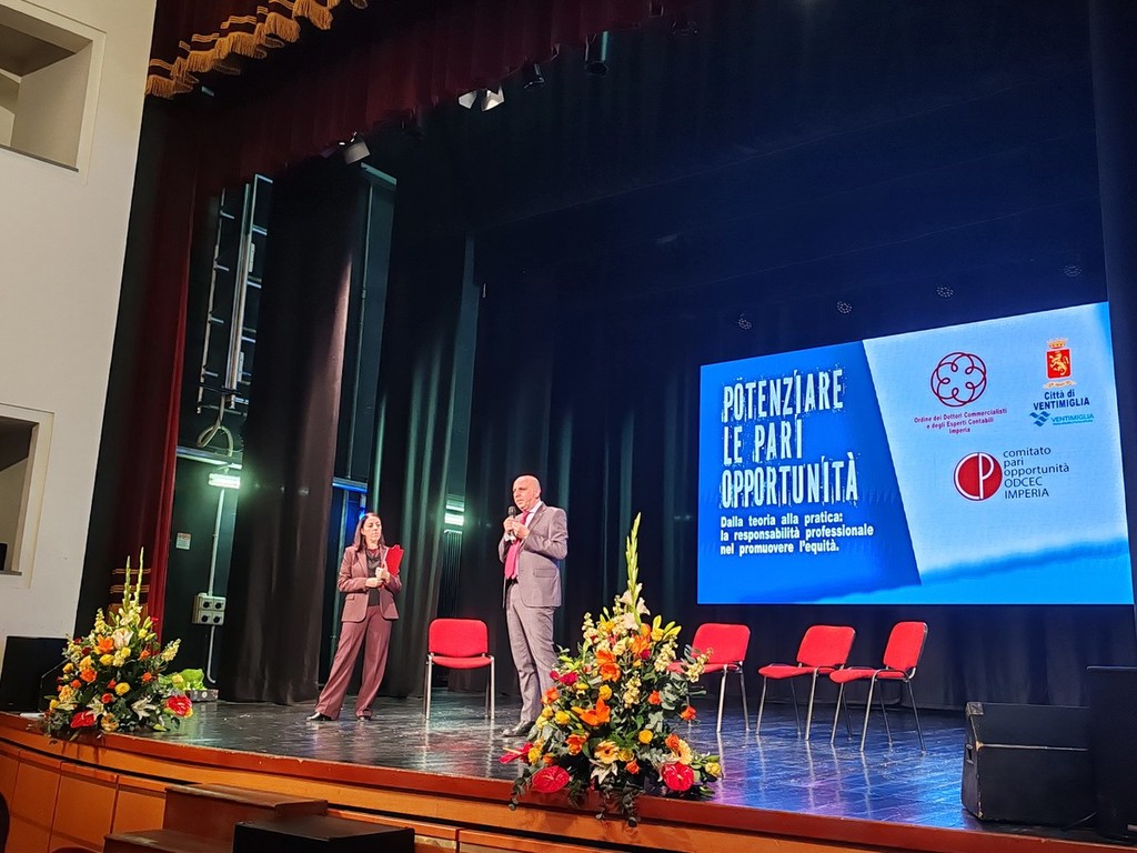 "Potenziare le pari opportunità. Dalla teoria alla pratica: la responsabilità professionale nel promuovere l’equità" è stato il tema al centro di un convegno svoltosi nel pomeriggio odierno al teatro comunale di Ventimiglia.