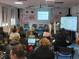 Dopo i saluti istituzionali della Dirigente dott.ssa Antonella Costanza, un momento di informazione e formazione plenaria che ha visto protagonisti lo Staff di Scuola Digitale, capitanato dalla dott.ssa Monica Cavallini, nel ruolo di Project Manager e dalla dott.ssa Angela Sugliano, presidente di Epict Italia; a seguire l’intervento della Mentor Antonella Marchesi e un laboratorio pratico focalizzato in particolare sulla documentazione didattica efficace e sulla diffusione delle metodologie innovative nelle classi. Presente nel suo ruolo di formatore ligure d’eccellenza il dott. Andrea Cartotto. A guidare l'Istituto in questo percorso di apertura e innovazione, la Dirigente Scolastica, che ha sottolineato l'importanza di tali iniziative per lo sviluppo professionale del corpo docente.