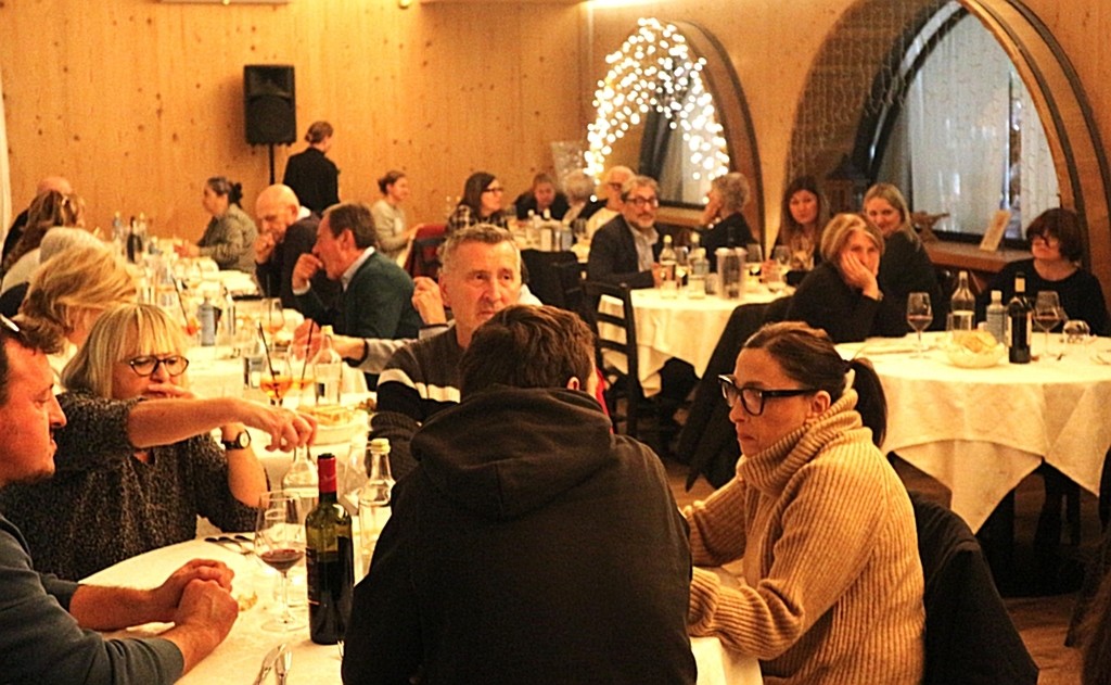 Durante la serata il pubblico ha scoperto che il grano saraceno, ingrediente principe di pizzoccheri, sciatt e polenta taragna, non è un cereale e non ha nulla a che vedere con i Saraceni; che dei pizzoccheri esistono infinite varianti, ognuna legata alle tradizioni familiari e ai prodotti locali; e che la polenta taragna deve il nome al taràgn, il bastone di legno con cui viene mescolata. Tre simboli — pizzoccheri, grano saraceno e taragna — uniti dalla stessa origine: la montagna, la fatica, l’ingegno.