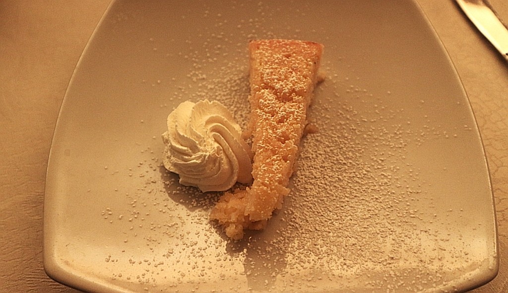 A chiudere la cena, un dolce dal carattere rustico e luminoso: torta di limone e polenta, perfetto suggello di un menu concepito per raccontare la montagna, i suoi pascoli, i suoi focolari e quella cucina che sa essere semplice e al tempo stesso profondamente identitaria.