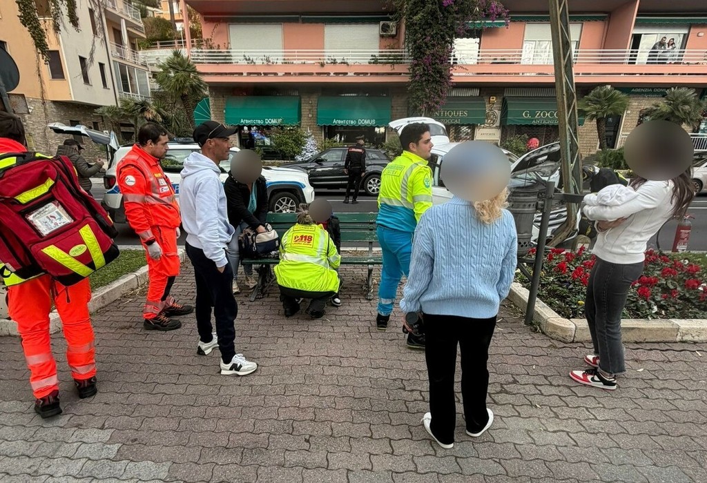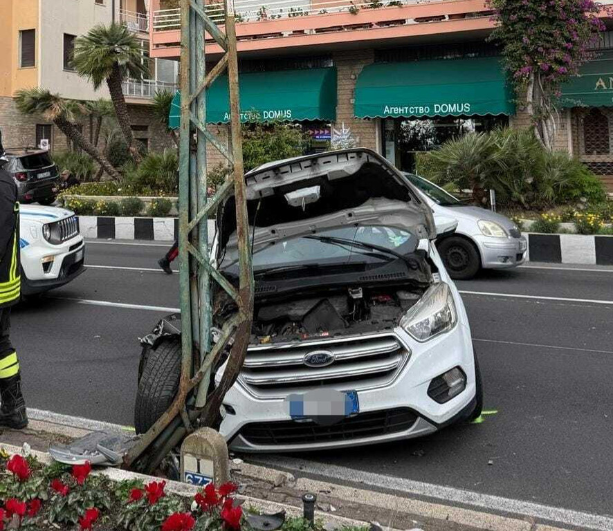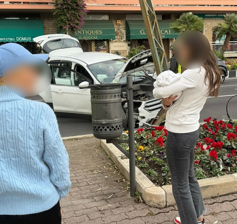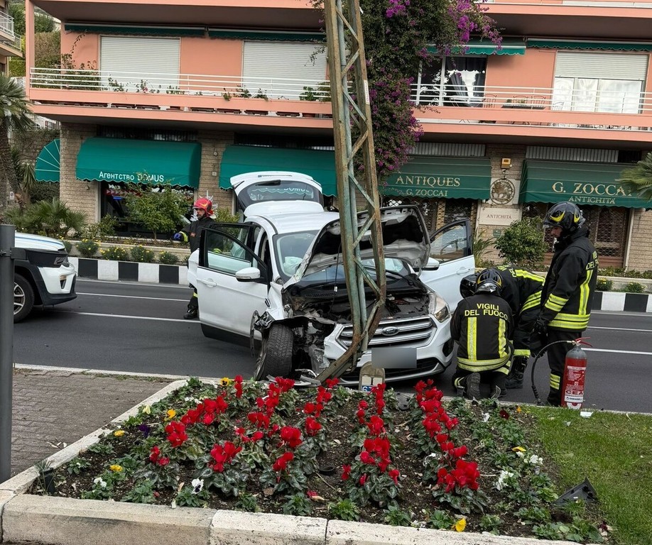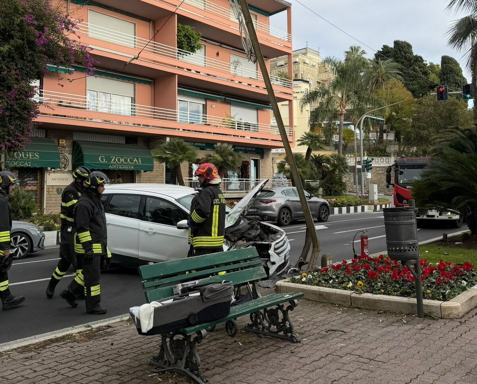 Ospedaletti: incidente in Corso Regina Margherita, auto contro un palo della Riviera Trasporti (Foto)