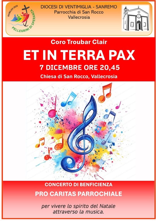 Il Coro Troubar Clair si esibisce nella chiesa parrocchiale di San Rocco a Vallecrosia. Questa sera, il 7 dicembre, alle 20.45, verrà proposto "Et in terra pax", un concerto di beneficenza pro Caritas parrocchiale.