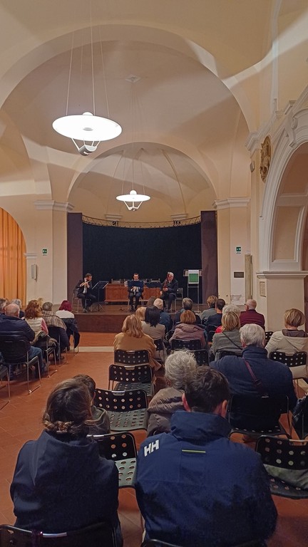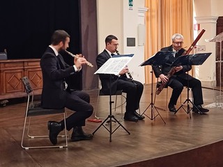 Il trio Renzo, Simone e Vittorio De Franceschi (fagotto, flauto e clarinetto) ha suonato in modo ineccepibile brani di Kasper Kummer, Arcangelo Corelli, Charles Gounod, eseguendo alla fine un trascinante medley natalizio.
