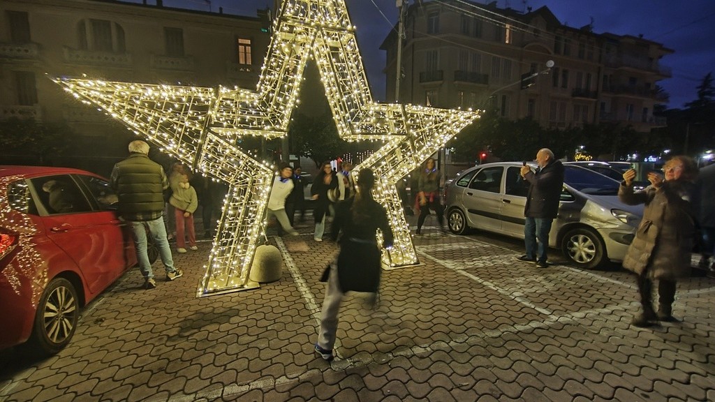 I preparativi sono stati accompagnati da una merenda offerta ai presenti dall’associazione locale di volontari “Il Descu Spiaretè”: nonostante qualche piccolo problema tecnico, le luci si sono finalmente accese, con una coreografia di danza che ha dato definitivamente il via al periodo natalizio anche nella Città delle rose. Presenti al momento dell'accensione anche il sindaco Daniele Cimiotti e l'assessore al turismo Simona Cecchetto.