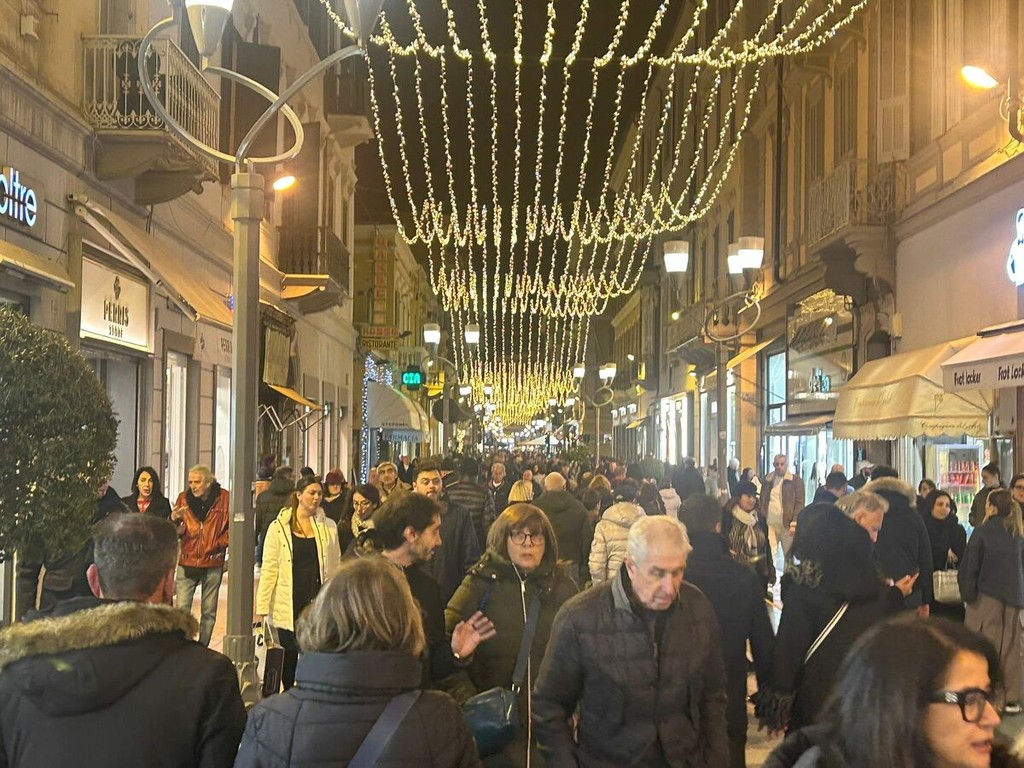 Le vie del centro, da via Matteotti al cuore del quadrilatero commerciale, sono state letteralmente prese d’assalto sia sabato 6 dicembre – giorno della tradizionale accensione delle luci natalizie – sia domenica 7. Ma anche i quartieri più periferici hanno vissuto un clima di grande movimento, segno che l’ondata di presenze ha coinvolto l’intero tessuto cittadino. Negozi, bar, locali e ristoranti hanno lavorato senza sosta, con molti esercenti che hanno parlato di “giornate piene come a Capodanno”.