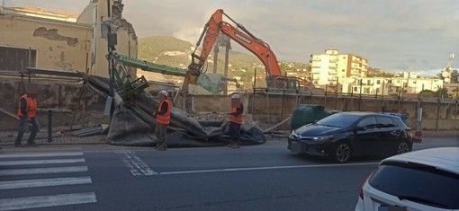 Tragedia sfiorata a Vallecrosia. Una gru si sbilancia, per cause ancora in via d’accertamento, e fa crollare un muro sul marciapiede in prossimità dell'Aurelia. E' successo nel pomeriggio, intorno alle 16, durante i lavori di demolizione di Maria Ausiliatrice, vicino all'oratorio Don Bosco, per consentire la costruzione di un supermercato. Fortunatamente non si sono registrati feriti.