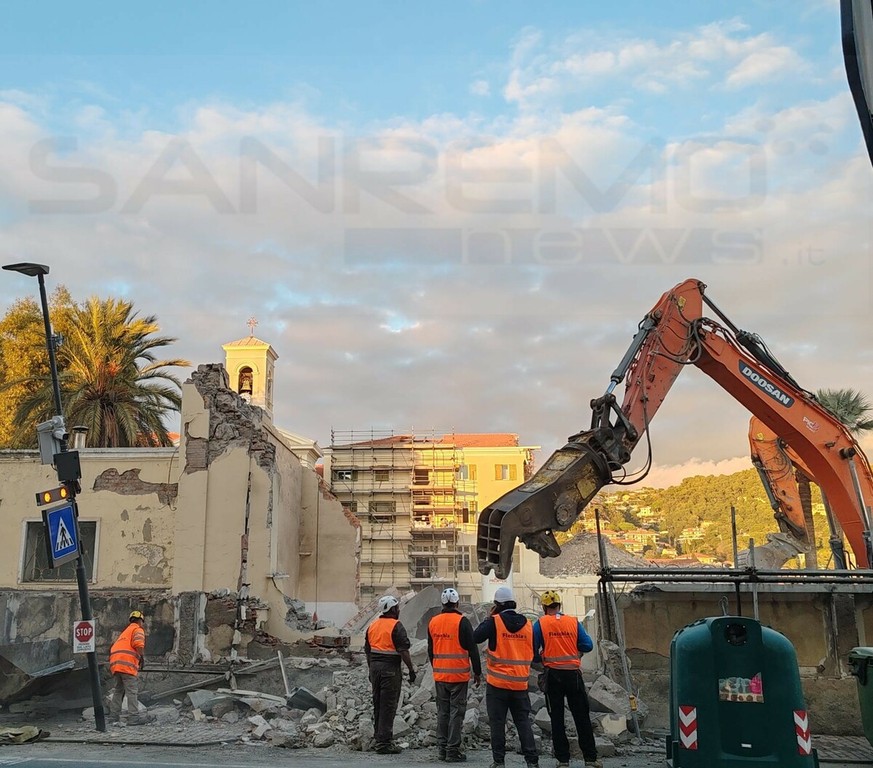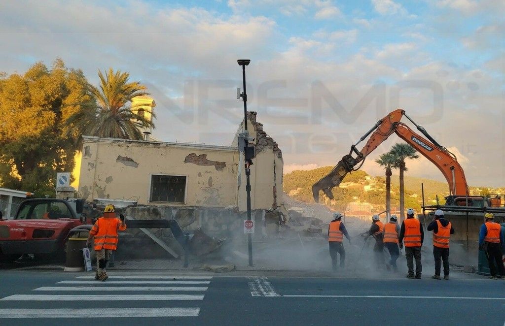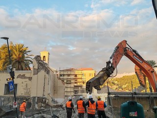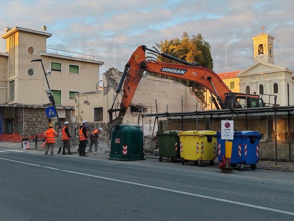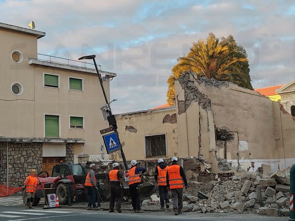 Tragedia sfiorata a Vallecrosia. Una gru si sbilancia, per cause ancora in via d’accertamento, e fa crollare un muro sul marciapiede in prossimità dell'Aurelia. E' successo nel pomeriggio, intorno alle 16, durante i lavori di demolizione di Maria Ausiliatrice, vicino all'oratorio Don Bosco, per consentire la costruzione di un supermercato. Fortunatamente non si sono registrati feriti.