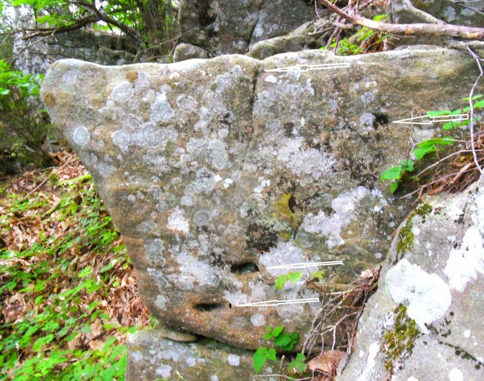 Come sottolinea Andrea Eremita nel suo blog Archeonervia (934.000 visualizzazioni), la freccia in alto indica il colatoio per il sangue, mentre una seconda segnalazione evidenzia un piccolo foro destinato a contenere offerte votive.