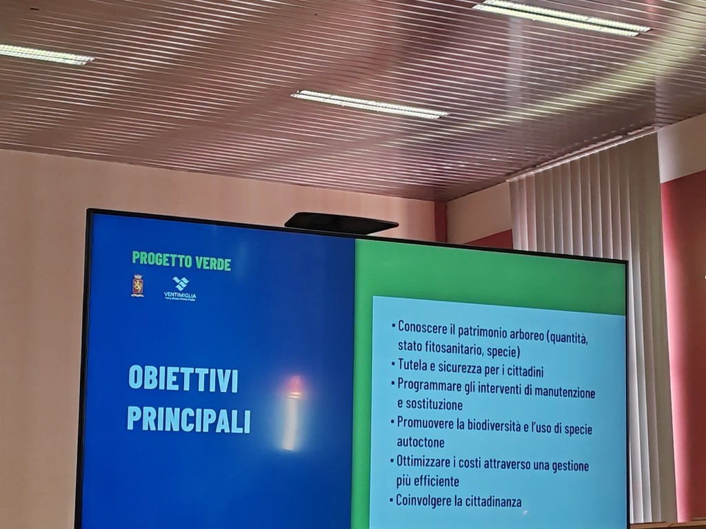 Conoscere, dunque, per proteggere e pianificare per migliorare il verde pubblico. "Era uno dei punti del nostro programma. E' una gioia essere qui con tutti voi a spiegare quello che vogliamo fare" - dichiara l'assessore Domenico Calimera presentando il progetto presso l’aula consiliare di Ventimiglia - "Inizieremo con il censimento per capire se ci sono alberi malati, da curare o sostituire per una questione di sicurezza. Il verde è un bene pubblico essenziale, al pari delle infrastrutture. Con questo progetto intendiamo migliorare la qualità della vita e la salute, mitigare il clima urbano, aumentare la biodiversità e la resilienza ambientale e garantire sicurezza e manutenzione programmata. Il progetto del verde comunale è lo strumento di pianificazione strategica e di gestione tecnica del patrimonio vegetale. E’ costituito dal censimento del verde: verticale (alberature) orizzontale (aiuole, giardini, parchi, viali); VTA, valutazione di stabilità degli alberi, linee guida di manutenzione e sicurezza e proposte di riqualificazione (arboricoltura conservativa) e nuove piantumazioni. Gli obiettivi principali sono conoscere il patrimonio arboreo (quantità, stato fitosanitario, specie), la tutela e la sicurezza per i cittadini, programmare gli interventi di manutenzione e sostituzione, promuovere la biodiversità e l’uso di specie autoctone, ottimizzare i costi attraverso una gestione più efficiente e coinvolgere la cittadinanza. Partiremo, dunque, dal censimento del verde con una rilevazione georeferenziata di tutti gli alberi pubblici ed aree verdi, con una raccolta dati: specie, dimensioni, stato fitosanitario, collocazione. Verrà usato il GIS (Geograpfhic Information System) e piattaforme digitali per la gestione per creare una banca dati aggiornata che permette di conoscere la 'storia' di ogni albero censito. Si farà poi la valutazione di stabilità VTA - Visual Tree Assesment per monitorare la sicurezza e la salute degli alberi attraverso un'analisi visiva (e strumentale quando necessaria) dello stato di stabilità delle alberature, la categorizzazione del rischio in Classi di Propensione al Cedimento e la pianificazione degli interventi di manutenzione o sostituzione con l'obbiettivo di prevenire i rischi e garantire la sicurezza. Puntiamo a una gestione sostenibile e programmata con l'applicazione delle tecniche di arboricoltura conservativa su esemplari 'anziani', interventi programmati, sostituzioni mirate, a scelte di specie autoctone che si adattano meglio al clima locale, ad aiuole fiorite e spazi verdi multifunzionali e a cura del suolo, irrigazione e biodiversità. Il verde come infrastruttura crea benessere, è una rete ecologica e sociale che riduce l’inquinamento atmosferico, mitiga le temperature estive, favorisce salute e socialità. E’ strettamente collegato ai PUMS (Piani Urbani della Mobilità Sostenibile) ed alle Isole ambientali (quartieri o zone residenziali all’interno dei quali il traffico veicolare di attraversamento viene limitato o disincentivato) secondo l’attuazione degli indirizzi europei che hanno dato origine al D.M. 24/03/2016. Intendiamo investire in sicurezza, salute e bellezza della città per un sistema del verde connesso, sicuro e sostenibile".