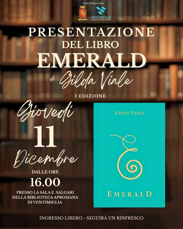 "Emerald" di Gilda Viale verrà presentato oggi pomeriggio, giovedì 11 dicembre, alle 16 nella sala E. Salgari della Biblioteca Aprosiana di Ventimiglia.