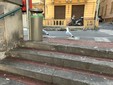 Secondo chi vive o lavora nell’area, il problema nasce soprattutto nelle prime ore del mattino, quando diversi proprietari portano i propri cani a fare i bisogni lungo la scalinata, spesso senza pulire. Una situazione che, con il passare dei giorni, ha lasciato segni evidenti sulla pavimentazione: aloni scuri, chiazze ben riconoscibili e un odore acre che si avverte già da diversi metri di distanza.