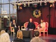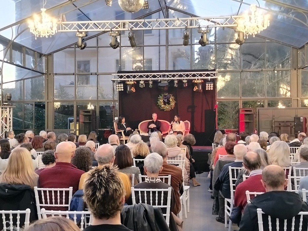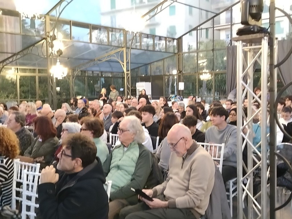 La serra "La Fenice" di Villa Nobel era praticamente piena per l'incontro con l'autore il quale, di fronte a un pubblico di tutte le età, ha ripercorso la genesi e la stesura degli ultimi due capitoli della sua saga ( M. “La fine e il principio”, “L’ora del destino”), con riflessioni anche sulla genesi storica, ovvero quegli anni che hanno segnato profondamente la storia italiana e che sono oggi così attuali, con attenzione anche al giovane pubblico presente, perché "a chi è più anziano magari certi aspetti sembrano scontati, ma dobbiamo rivolgerci ai giovani, parlare anche a loro, con un linguaggio giusto per loro, di queste cose".