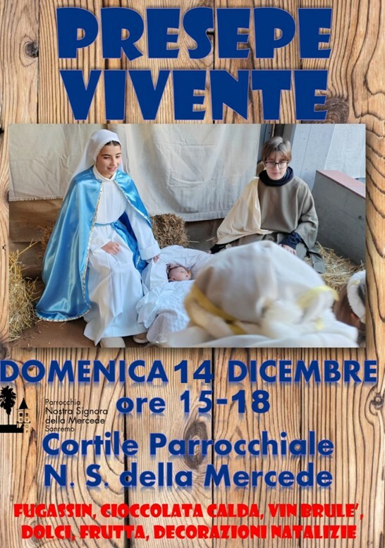 Domenica 14 dicembre, dalle ore 15.00 alle 18.00, il cortile della parrocchia francescana Nostra Signora della Mercede, nel quartiere di San Martino in Sanremo, si trasformerà nuovamente in un autentico viaggio nel tempo, riportandoci al Paese dei tempi di Gesù. Un’occasione imperdibile per grandi e piccini di immergersi nei sapori, colori e atmosfere che ci avvicinano al vero significato del Natale.