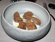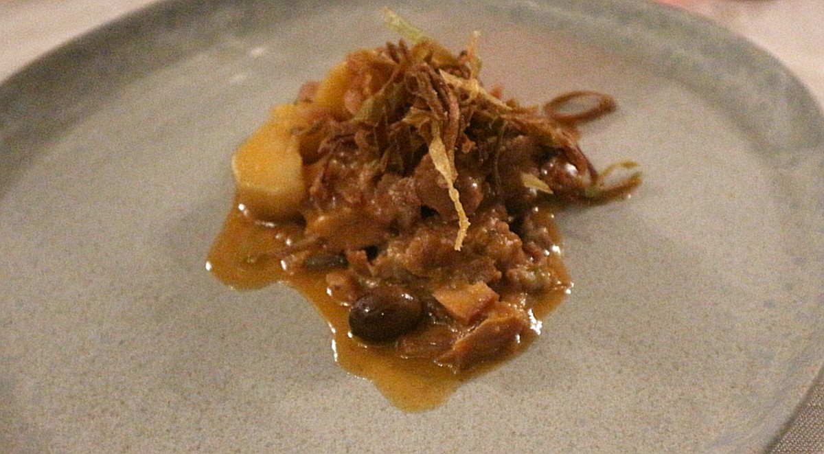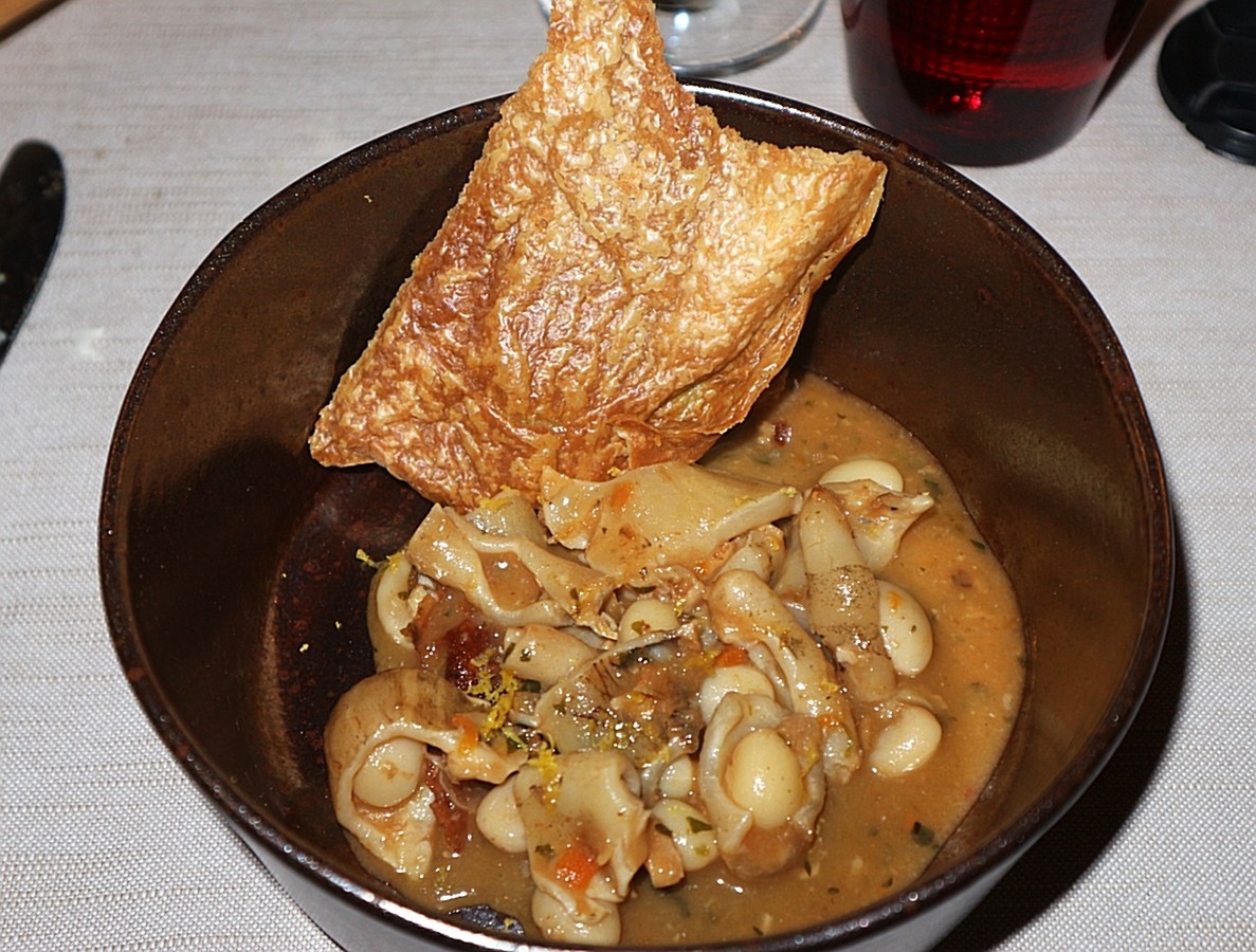 “Bieletti” di stoccafisso con cialda all’acqua di cottura dei fagioli di Pigna