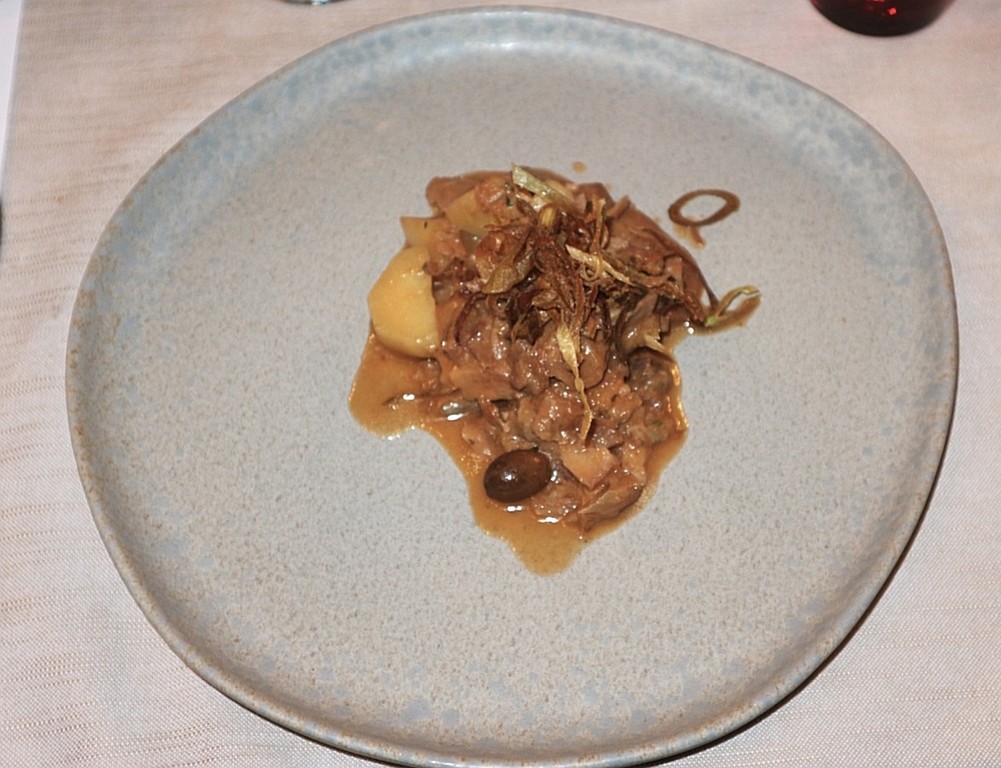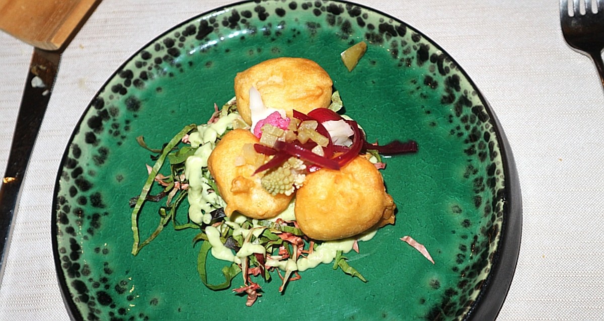 Una preparazione che gioca sul contrasto tra consistenze e sapori. Il baccalà, croccante all’esterno e morbido all’interno, incontra l’agrodolce mediterraneo in un equilibrio elegante e misurato, capace di valorizzare la struttura del pesce.