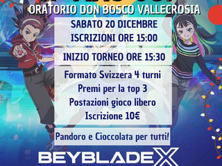 Il pomeriggio sarà ricco di attività: i partecipanti potranno sfidarsi nelle battaglie di Beyblade X, cimentandosi per conquistare il primo premio. Non mancheranno postazioni di gioco libero aperte a tutti coloro che vorranno provare, oltre a momenti di relax con pandoro e cioccolata calda offerti ai giocatori.