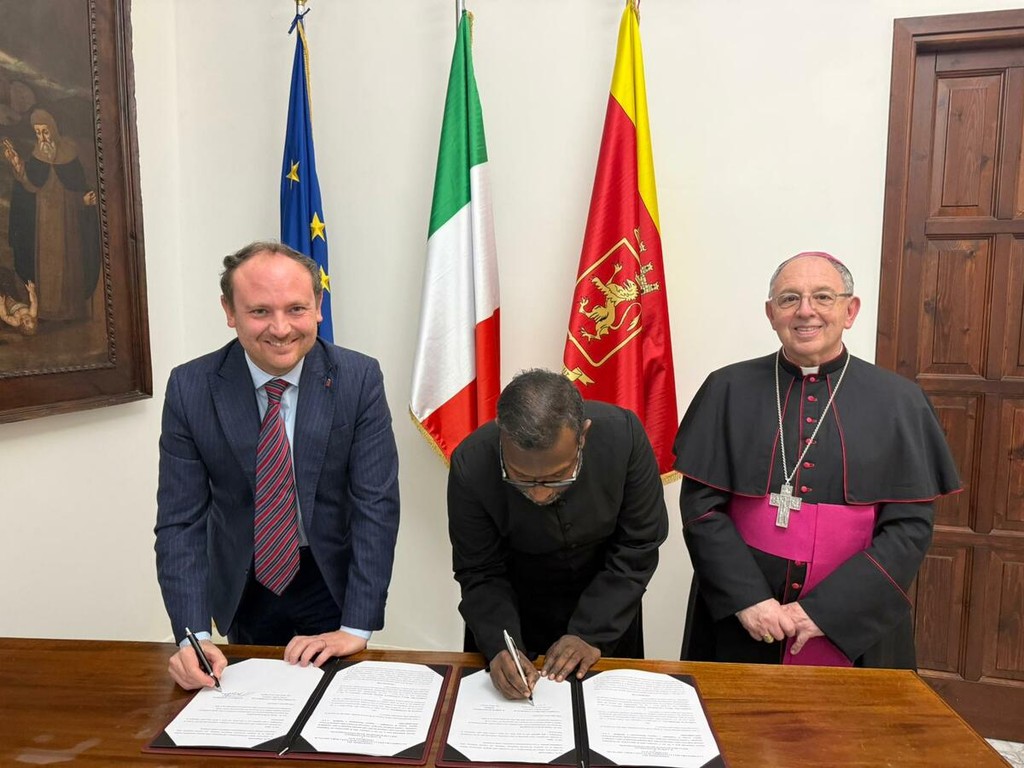 È stata firmata la convenzione tra il Comune di Ventimiglia e la Parrocchia Cattedrale di Nostra Signora Assunta, alla presenza del Sindaco di Ventimiglia, On. Flavio Di Muro, del Parroco Can. Gérard Majilla e del Vescovo della Diocesi di Ventimiglia-Sanremo, Mons. Antonio Suetta.