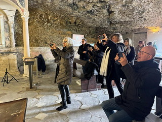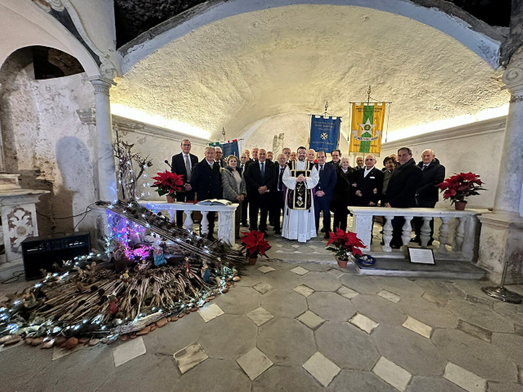 La giornata si è aperta con un momento di intensa spiritualità: la Santa Messa, celebrata da Don Marco Palermo presso il millenario Santuario di Nostra Signora dell’Annunziata, luogo di straordinario valore storico e religioso, incastonato in una grotta di origini preistoriche. Il passo evangelico del giorno, dedicato all’Annunciazione a Maria, ha reso la celebrazione particolarmente significativa e carica di simbolismo, richiamando idealmente la grotta di Betlemme. La partecipazione raccolta e commossa dei fedeli ha trasformato la funzione in un autentico momento di fede, devozione e comunione. Alla cerimonia erano presenti autorevoli rappresentanti istituzionali e associativi: il Senatore Gianni Berrino, il Vicesindaco di Taggia Espedito Longobardi, il Console Provinciale dei Maestri del Lavoro Cav. Uff. Salvatore Napoli, il Coordinatore Regionale ANIOC Liguria e Delegato Provinciale Cav. Uff. Roberto Pecchinino, il Delegato Comunale di Imperia Cav. Antonello Motosso, il Delegato Comunale di Sanremo Cav. Gianni Ostanel, il Delegato Comunale di Arma di Taggia Cav. Andrea Giulianetti, insieme a numerosi Insigniti, soci, parenti e amici.
