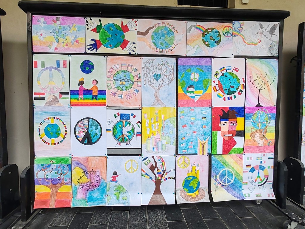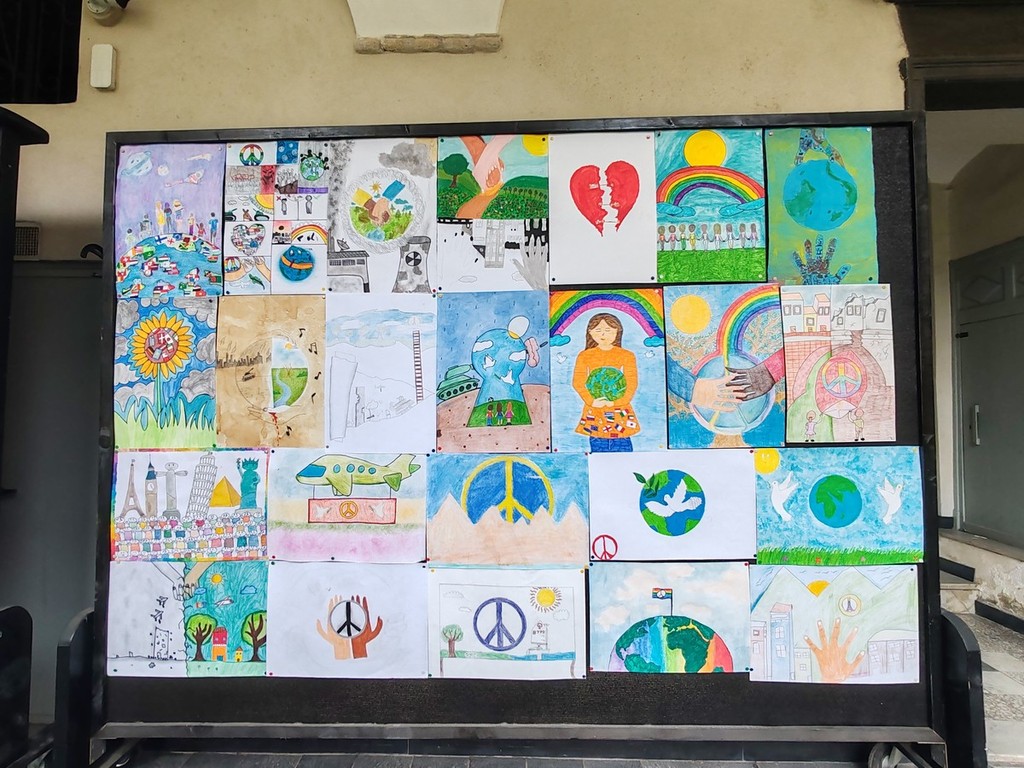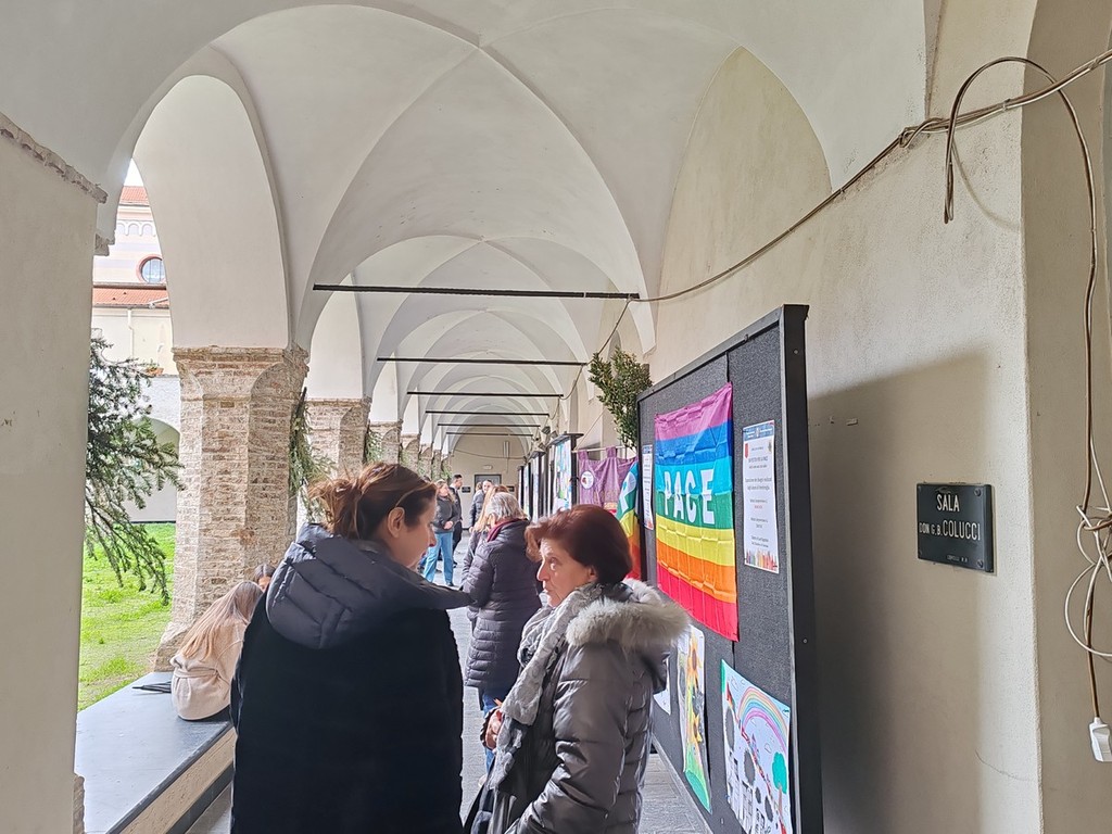 Arcobaleni, colombe e persone che si tengono per mano. Un'esposizione di disegni, realizzati dai bambini dell'istituto comprensivo n. 1 Biancheri e dell'istituto comprensivo n. 2 Cavour, ha preso il via ieri nel chiostro di Sant'Agostino a Ventimiglia.