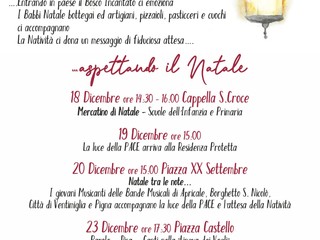 L'appuntamento chiuderà la rassegna '...aspettando il Natale' che ha preso il via lo scorso 18 dicembre con il mercatino di Natale organizzato dalle scuole dell'infanzia e della primaria. A seguire la luce della pace è giunta alla residenza protetta del paese lo scorso 19 dicembre mentre le note eseguite dai giovani musicanti delle bande musicali di Apricale, Borghetto San Nicolò, Città di Ventimiglia e Pigna hanno accompagnato la luce della pace e l'attesa della Natività, il 20 dicembre. Infine, ieri, si è svolto 'Parole...Risa...Canti nella lingua dei vegli'.