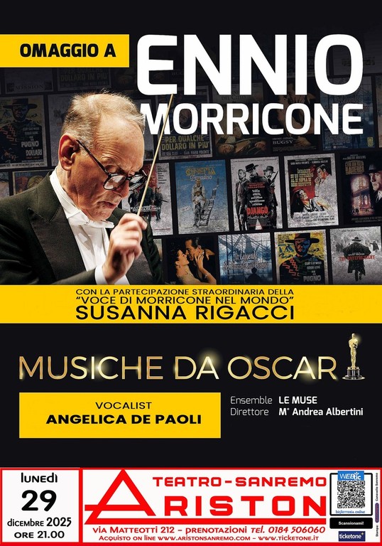 Il concerto del 29 dicembre al Teatro Ariston si preannuncia come un evento imperdibile, capace di unire grande musica, memoria collettiva e suggestioni cinematografiche, nel cuore di Sanremo, tempio della musica italiana. Un tributo autorevole, emozionante e di altissimo profilo artistico: un’occasione unica per il pubblico di rivivere la magia senza tempo di Ennio Morricone attraverso interpreti che ne incarnano autenticamente lo spirito.