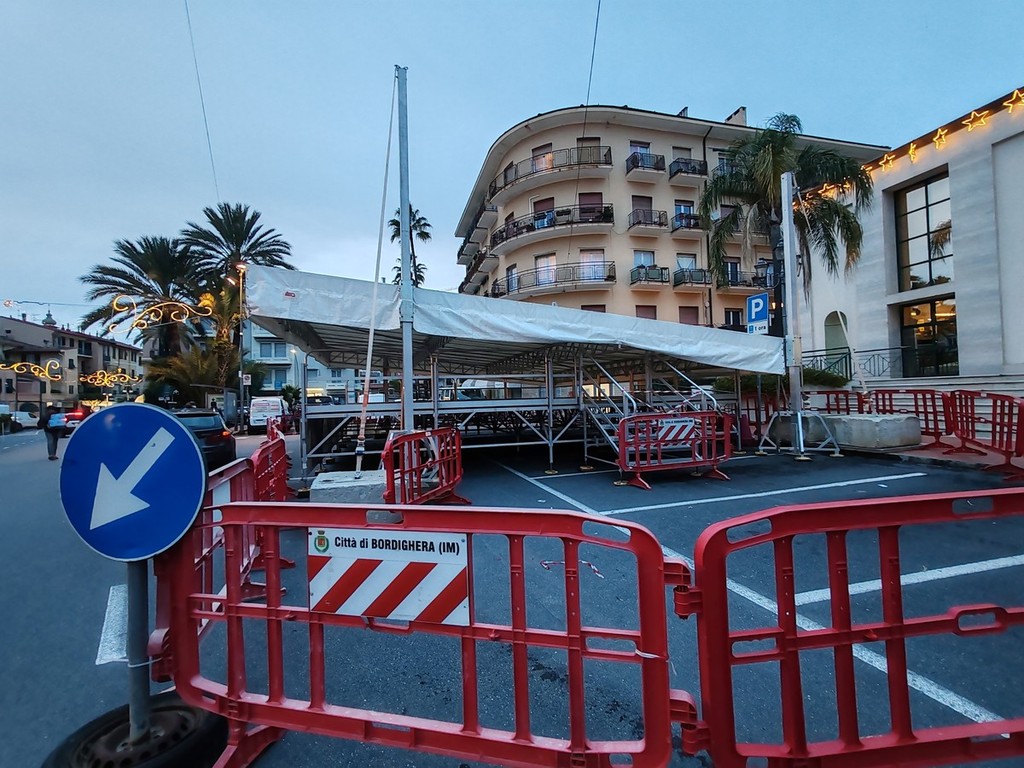 Bordighera si prepara al Capodanno in piazza. E' iniziato, infatti, l'allestimento del palco in piazza Garibaldi in vista della grande festa organizzata dall'Amministrazione Ingenito per dire addio al 2025 e dare il benvenuto al 2026.