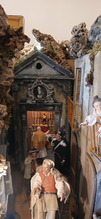 Personaggi, scene e storie nuove. Tradizione e simbologia si amalgamano perfettamente nel presepe napoletano del '700 allestito, anche quest'anno, nell'ex seminario a Bordighera.