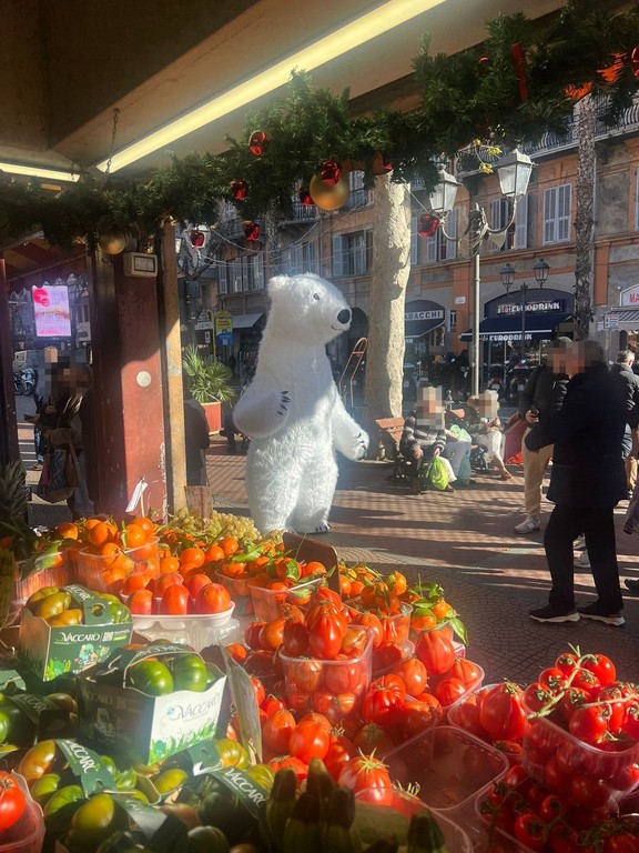 Un orso polare e Stitch animano il mercato del venerdì e il mercato coperto di Ventimiglia.