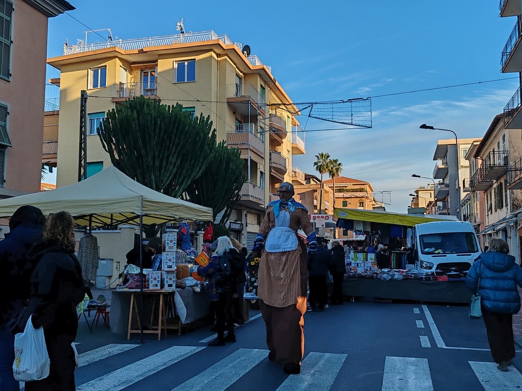 Cittadini e turisti, dal mattino alla sera, hanno, infatti, passeggiato lungo l'isola pedonale lungo l'Aurelia, chiusa al traffico veicolare, per curiosare tra le bancarelle e fare shopping approfittando della prima domenica di saldi. Per l'occasione erano aperti anche negozi, bar e ristoranti. Il tracciato della manifestazione è stato, inoltre, animato durante tutto l’arco della giornata dal “Teatro dei Mille Colori”: le Miss più intriganti e simpatiche, Miss Spavento e Miss Scordo, hanno regalato sorrisi e divertimento ai più piccoli grazie alle loro peculiari animazioni che caratterizzano la loro attività. Musica dal vivo al mattino, invece, grazie all'esibizione dell’Orchestra Filarmonica Giovanile Città di Ventimiglia, diretta dal maestro Franco Cocco, mentre nel pomeriggio si è svolta la sfilata tradizionale con musici e sbandieratori del Sestriere Auriveu di Ventimiglia.