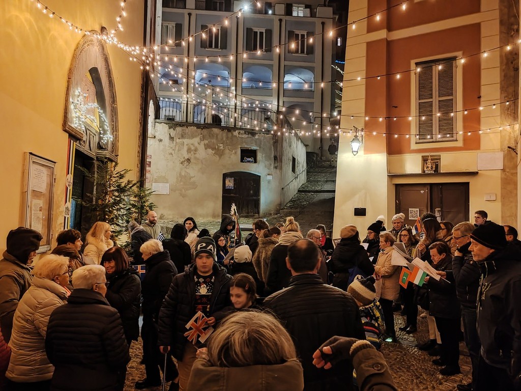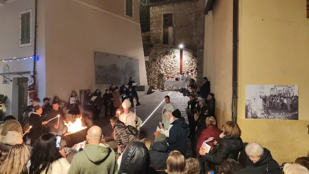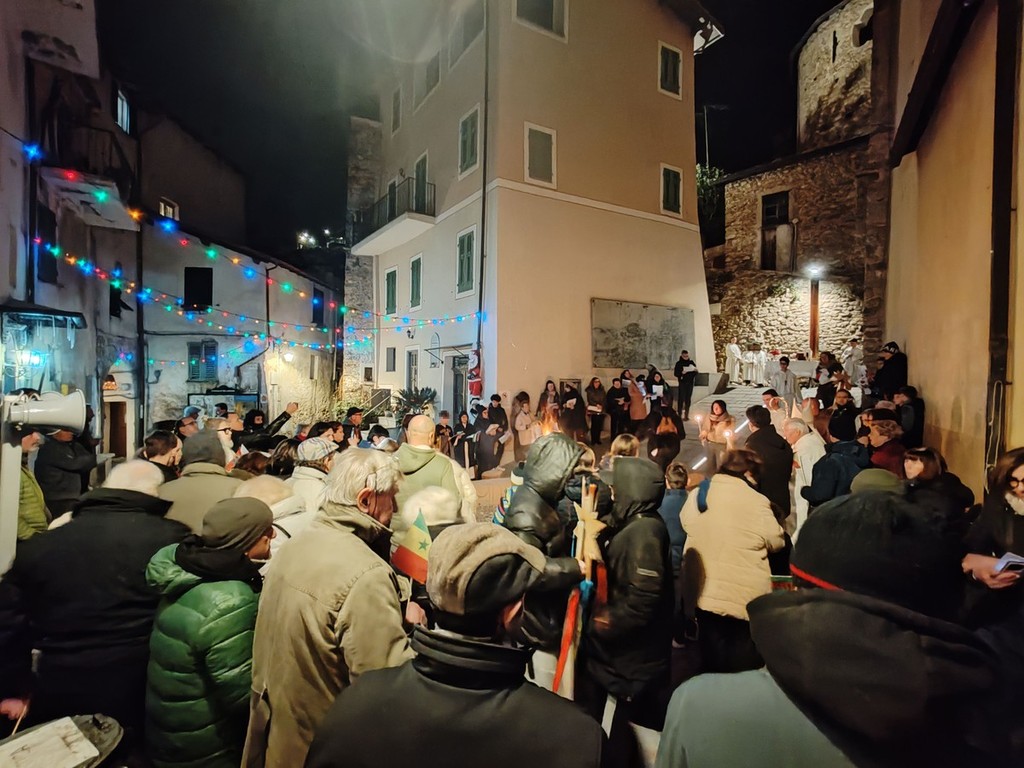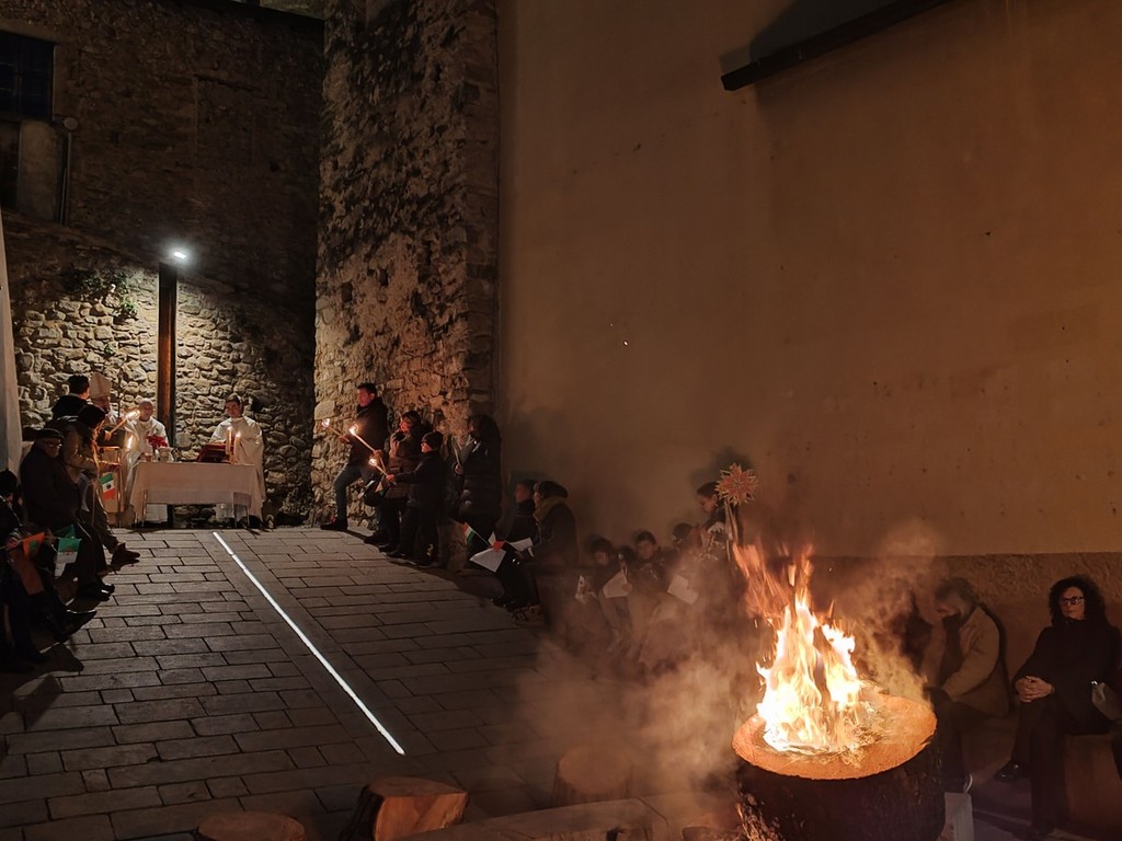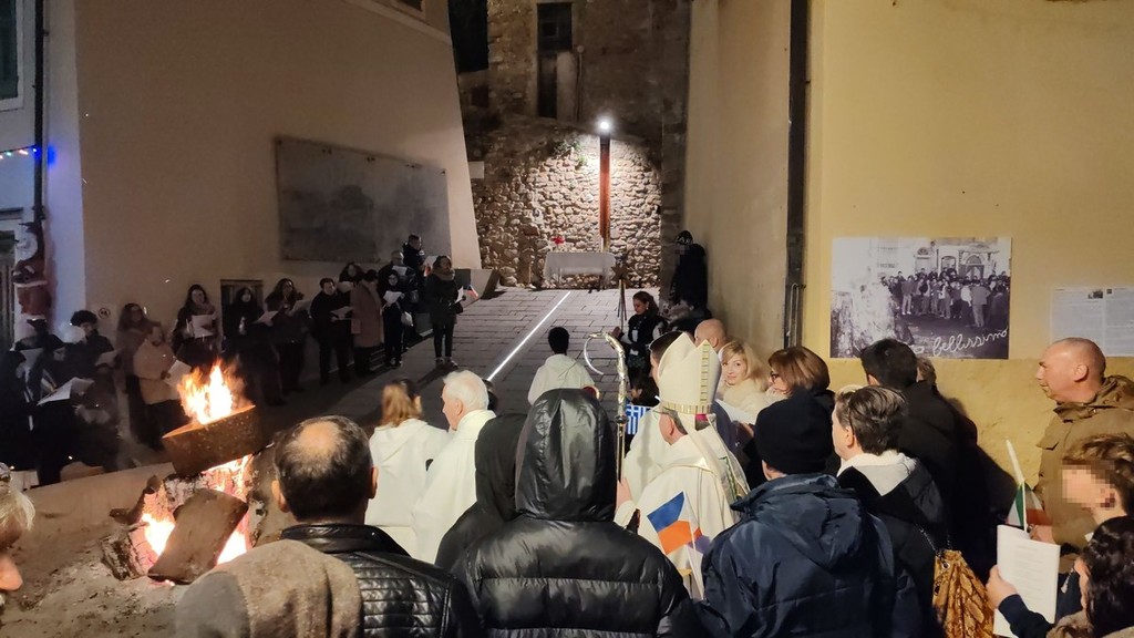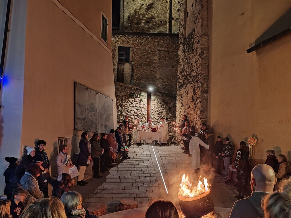 Si è svolta, in seguito, l'accensione delle fiaccole, segno di luce, prima della celebrazione della santa messa al fuoco presieduta dal vescovo della diocesi Ventimiglia-Sanremo, Monsignor Antonio Suetta. Infine, si è tenuto un apericena condiviso, un momento conviviale per scambiarsi gli auguri. Le offerte raccolte verranno usate per aiutare i più bisognosi.
