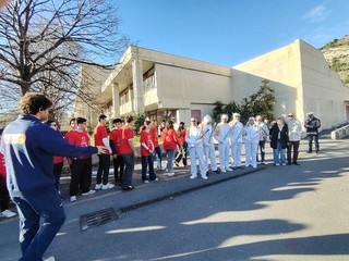 Particolarmente significativo è stato il passaggio dal Liceo Aprosio, storica e poliedrica istituzione scolastica della città. La scuola, da sempre punto di riferimento culturale e formativo per il territorio, ha voluto rendere omaggio all’evento con una calorosa accoglienza, coinvolgendo studenti, docenti e personale scolastico. Il cortile e gli spazi antistanti l’istituto si sono animati di colori, bandiere e applausi, in un clima di partecipazione autentica e sentita.