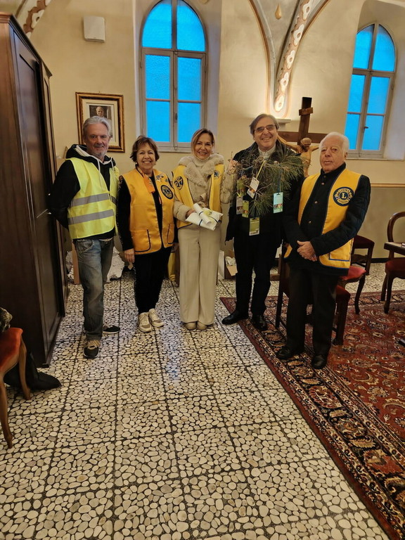 Ieri mattina una delegazione del Lions Club Ventimiglia ha fatto visita a Don Ferruccio, parroco della parrocchia di S. Agostino, portando con sé un simbolo semplice ma carico di significato: un ramo sul quale erano appesi buoni pasto, frutto della generosità e della solidarietà dei soci.